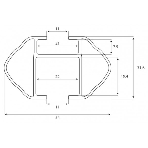 - T-profil nyílás szélessége: 21 mm