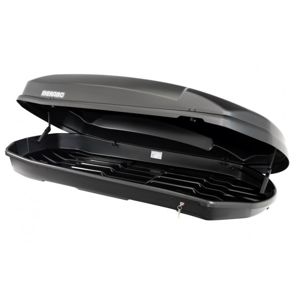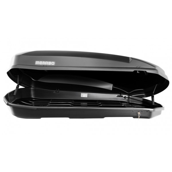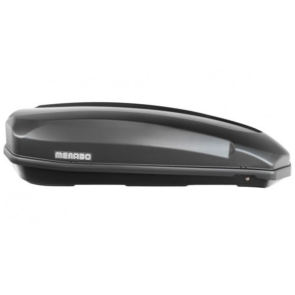 Tetőcsomagtartóra szerelhető Menabo Satellite 600 literes, jobb oldalról nyitható tetőbox. A Menabo Satellite tetőbox T-adapterrel rögzíthető az alumínium tetőcsomagtartó keresztrúd tetején lévő hornyokba. A T-adapteres rögzítő készlet a tetőbox alap tartozéka. Acél keresztrúd esetén, 60 milliméter széles U-bilincses rögzítőkészlet is tartalmaz a csomag. Egyszerűen felszerelhető, aeridinamikus és elegáns tetődoboz. Áramvonalas kialakítása hozzájárul az alacsonyabb szélzaj, csökkentett légellánálás eléréséhez és matt fekete színével igazán előkelő megjelenést biztosít.