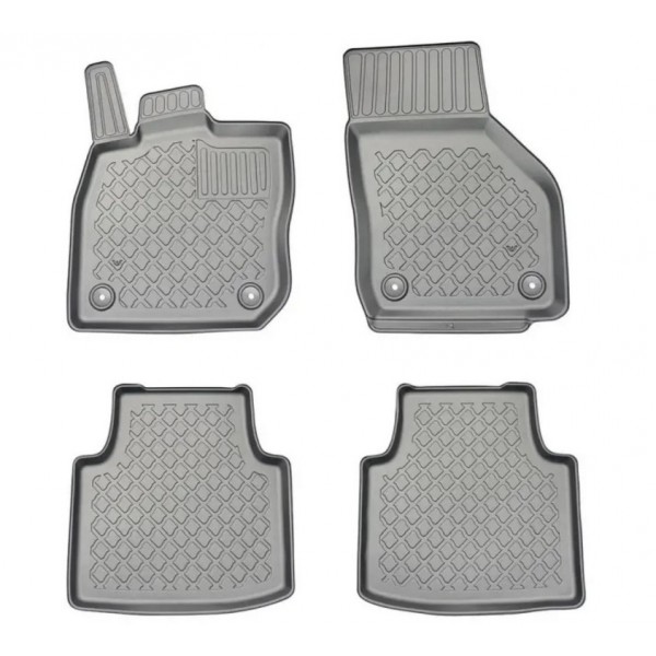Méretpontos szőnyeg. Kiváló minőségű, kopásálló, szagtalan peremes szőnyeg műanyagból Skoda Superb 2024-től gyártott autókhoz.