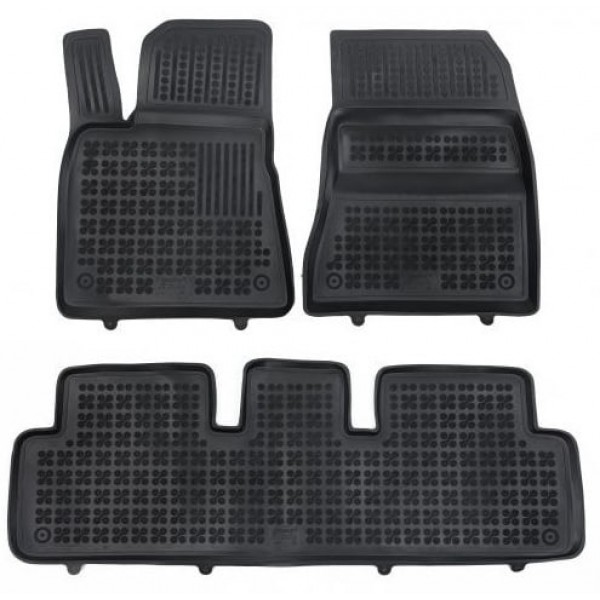 Méretpontos gumiszőnyeg. Gyári minőségű, kopásálló, szagtalan gumiból készült peremes gumiszőnyeg Tesla Model 3 2023-tól gyártott autókhoz. Három részes autó gumiszőnyeg garnitúra.