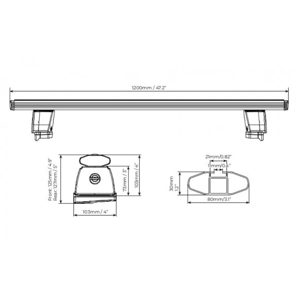 A tetőcsomagtartó talpai az autó vonalait követik és az autóspecifikus KIT precízen illeszkedik az autó tetején lévő tetősín négy pontján kialakított fix rögzítési pontokra. A fix rögzítési pontok általában az autó tetején egy műanyag díszléc alatt vannak elhelyezve és a díszlécben egy kis téglalap alakú ajtócska elhúzásával-kinyitásával válik láthatóvá. Kiváló minőségű, egyszerűen felszerelhető és zárható tetőtartó. A Menabo tetőcsomagtartó keresztrúdja alumíniumból készült, ezért igen tartósak, valamint az alumínium rúd közepén egy T-horony fut végig, amely használatával könnyebbé válik a kiegészítők felrögzítése és a rúd teljes hossza használhatóvá válik, a talp fölötti rész is.