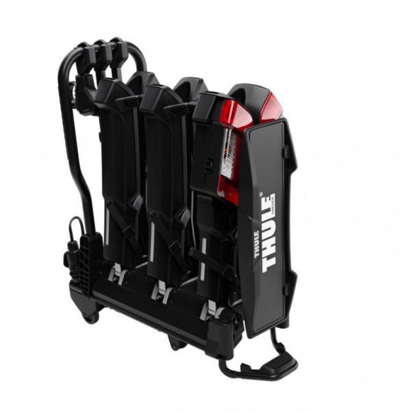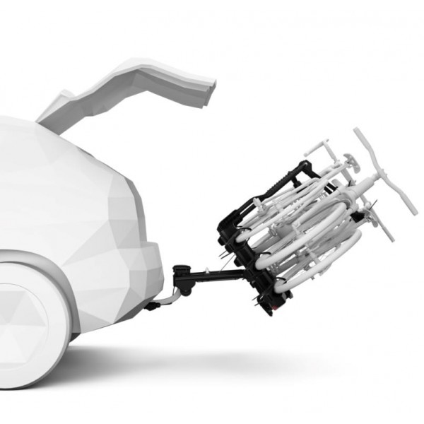 A Thule EasyFold 3 kerékpártartó elegáns, modern dizájnnal és integrált világítással büszkélkedhet, amely bármilyen járműstílushoz illeszkedik. Összecsukhatósága és könnyű kezelhetősége egyaránt biztosítja a formát és a funkcionalitást, innovatív dizájnjával a kerékpár stílusok széles skálájához illeszkedik, beleértve az e-bike-okat is. Zseniális, gyors, kényelmes, összehajtható, kis helyen elfér, a Thule EasyFold az első összecsúkható kerékpártartó a világon. Alapból 3 kerékpár szállítására alkalmas, de a 944700 adapter segítségével (külön megvásárolható adapter) még egy, így összesen 4 kerékpár is szállítható. A Thule Easy Fold 945 rubosztus felépítése és 60 kg-os terhelhetősége révén nehezebb-, elektromos kerékpárok, hegyi kerékpárok is szállíthatóak rajta. Innovatív kerékpárkarja pánttal és elforgatható fejjel biztonságos illeszkedést biztosít a 20 mm-től 90 mm-ig terjedő vázakhoz, így a gyerekkerékpártól a nehéz MTB-ig mindenhez alkalmas. Páratlanul egyszerű használat.